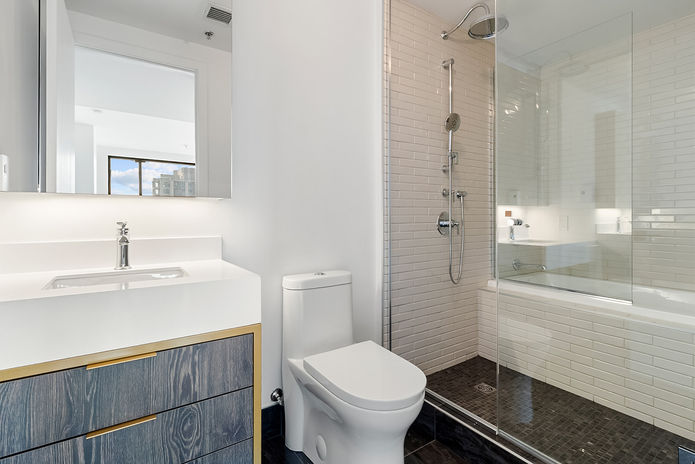 Réfrigérateur, cuisinière, hotte, lave-vaisselle, laveuse, sécheuse et un espace de rangement